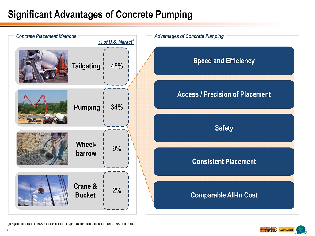 20% 17% 21% 18% 24% Central Mountain South Southeast West 6% 26% 14% 18% 17% 9% 9% Under $500 $500-1,000 $1,000-1,500 $1,500-2,500 $2,500-5,000 $5,000-10,000 $10,000+ No Project Concentration _____________________________________________________________________________________________________________________________ ___ _____________________________________________________________ Note: Revenue excludes contribution from the April 2018 O’Brien acquisition (approximately $14 million of revenue in FY 2017, al l of which were earned providing concrete pumping services in the U.S.). CPH has an October fiscal year end. (1) Analysis is pro forma adjusted for a full year contribution of CPH’s U.K. segment (Camfaud), which was acquired in Novemb er 2016, and assumes a constant currency adjustment based on a GBP to USD exchange rate of 1.370. (2) U.S. revenue breakdown based on concrete pumping operations only. (3) Project count based on U.S. and U.K. concrete pumping operations only. Figures do not sum to 100% due to rounding. Diversity Provides Resiliency Platform with Significant Scale and Diversity No Customer Concentration Geographic Diversity… 78% 22% U.S. U.K. FY 2017 Revenue 1 9% 6% 85% Top 10 11-20 21+ FY 2017 Revenue 56% 19% 25% Commercial Infrastructure Residential End Market Diversity 5 FY 2017 Project Count 3 Service Line Diversity 89% 11% Concrete Pumping Environmental Services FY 2017 Revenue 1 FY 2017 U.S. Revenue 2 …Even Within the U.S. FY 2017 U.S. Revenue 2