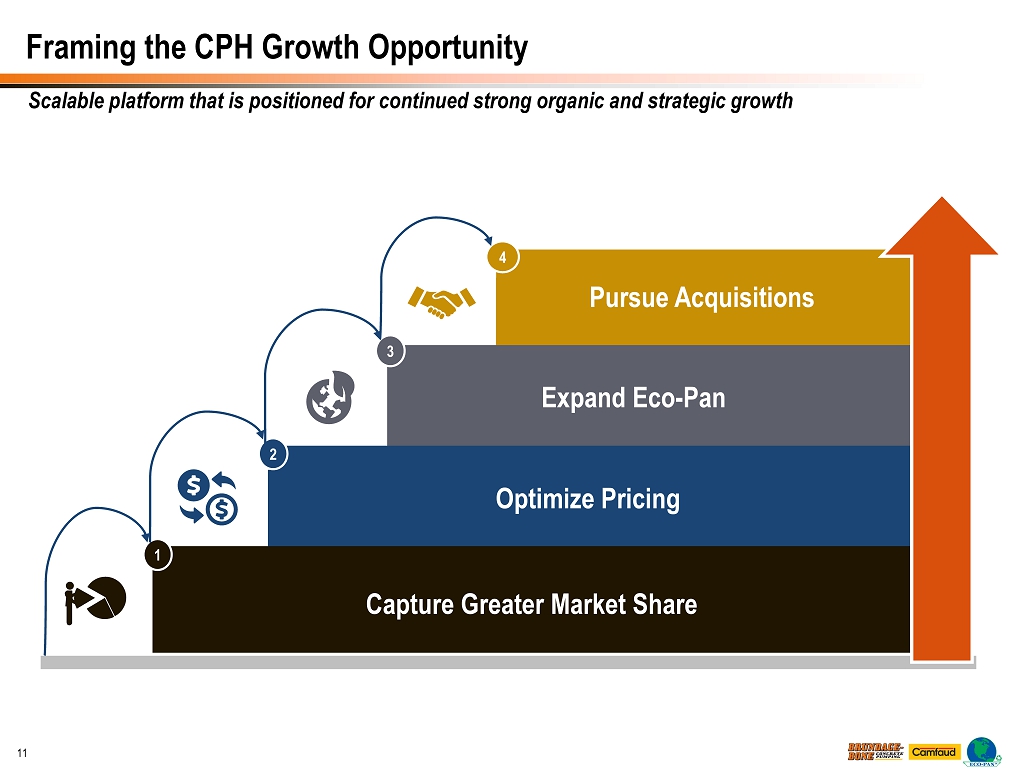 4 3 2 Framing the CPH Growth Opportunity 1 Scalable platform that is positioned for continued strong organic and strategic growth Capture Greater Market Share Optimize Pricing Expand Eco - Pan Pursue Acquisitions 11