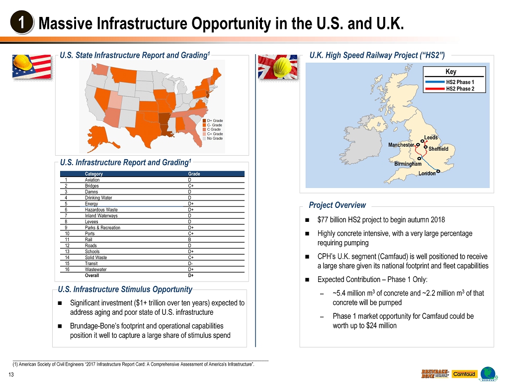 Massive Infrastructure Opportunity in the U.S. and U.K. 13  $77 billion HS2 project to begin autumn 2018  Highly concrete intensive, with a very large percentage requiring pumping  CPH’s U.K. segment (Camfaud) is well positioned to receive a large share given its national footprint and fleet capabilities  Expected Contribution – Phase 1 Only: – ~5.4 million m 3 of concrete and ~2.2 million m 3 of that concrete will be pumped – Phase 1 market opportunity for Camfaud could be worth up to $24 million _______________________________________________________________________________________________________________ (1) American Society of Civil Engineers “2017 Infrastructure Report Card: A Comprehensive Assessment of America’s Infrastruct ure ”. U.K. High Speed Railway Project (“HS2”) Manchester Birmingham London Leeds Sheffield Key HS2 Phase 1 HS2 Phase 2 Project Overview U.S. State Infrastructure Report and Grading 1 U.S. Infrastructure Report and Grading 1 1 Category Grade 1 Aviation D 2 Bridges C+ 3 Damns D 4 Drinking Water D 5 Energy D+ 6 Hazardous Waste D+ 7 Inland Waterways D 8 Levees D 9 Parks & Recreation D+ 10 Ports C+ 11 Rail B 12 Roads D 13 Schools D+ 14 Solid Waste C+ 15 Transit D - 16 Wastewater D+ Overall D+  Significant investment ($1+ trillion over ten years) expected to address aging and poor state of U.S. infrastructure  Brundage - Bone’s footprint and operational capabilities position it well to capture a large share of stimulus spend U.S. Infrastructure Stimulus Opportunity