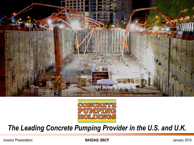 The Leading Concrete Pumping Provider in the U.S. and U.K. NASDAQ: BBCP January 2019 Investor Presentation