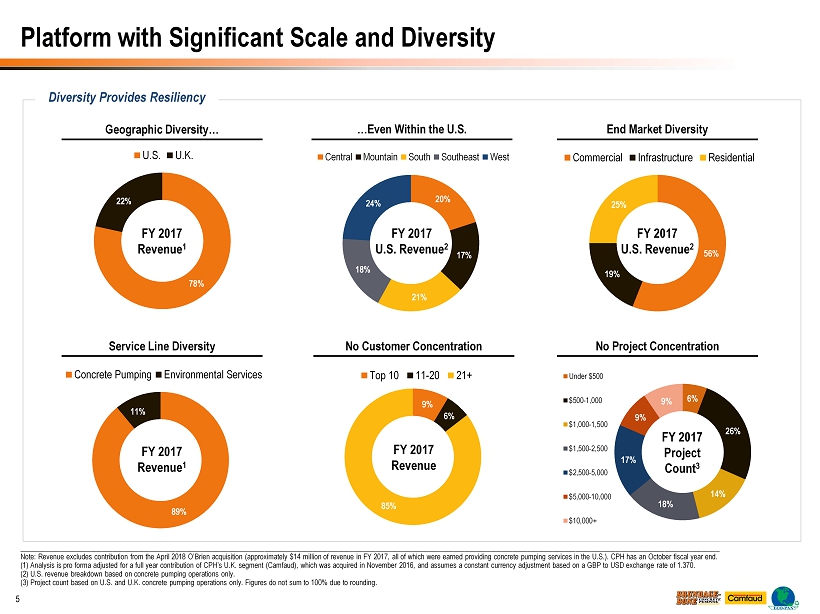 CPH Geographic Coverage 4 ___________________________________________________________________________________________________________________ Note: Denver is the HQ for CPH, London is the main corporate office in the U.K. First Eco - Pan location in the U.K. expected to o pen Q2 FY 2019. U.S. Footprint U.K. Footprint Legend: Corporate HQ # of Locations: 80 28 14